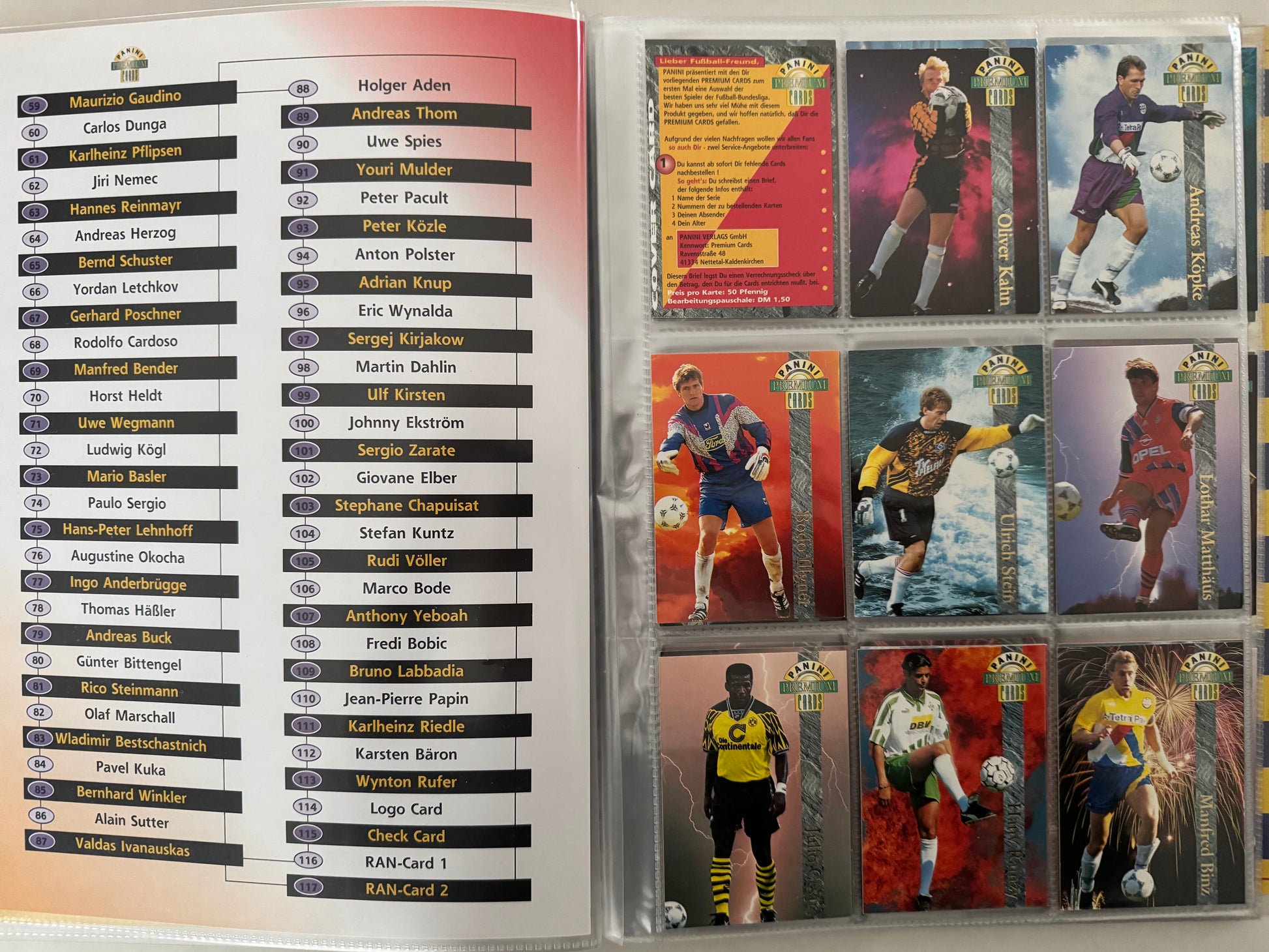 Fussball 1994-95 Panini Premium Cards Bundesliga - komplett No 1 - 115