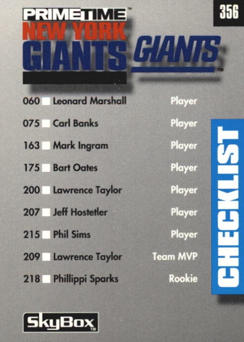 NFL 1992 SkyBox Prime Time - No 356 - New York Giants & New York Jets