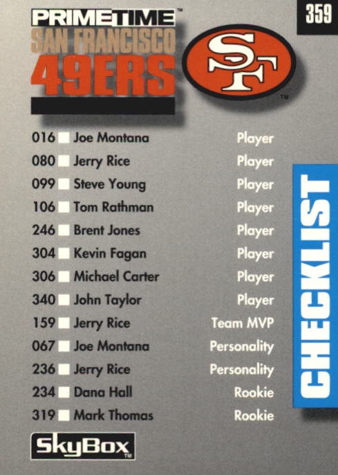 NFL 1992 SkyBox Prime Time - No 359 - San Francisco 49-ers & Seattle Seahawks